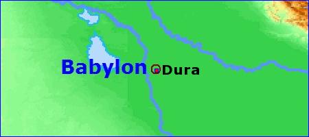 Du'ra. (a circle). The plain where Nebuchadnezzar set up the golden image, Dan 3:1, has been sometimes identified with a tract a little below Tekrit, on the left bank of the Tigris, where the name Dur is still found. M. Oppert places the plain, (or, as he calls it, the "valley"), of Dura to the southeast of Babylon, in the vicinity of the mound of Dowair or Duair, where was found the pedestal of a huge statue." Smith's Bible Dictionary or |