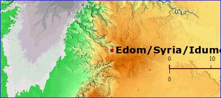 | E'dom. (red). The name Edom was given to Esau, the first-born son of Isaac and twin brother of Jacob, when he sold his birthright to the latter for a meal of lentil pottage. The country which the Lord, subsequently, gave to Esau was, hence, called "the country of Edom," Genesis 32:3, and his descendants were called Edomites. Edom was called Mount Seir and Idumea also. Edom was wholly a mountainous country. It embraced the narrow mountainous tract (about 100 miles long by 20 broad) extending along the eastern side of the Arabah from the northern end of the Gulf of Elath to near the southern end of the Dead Sea. The ancient capital of Edom was Bozrah (Buseireh ). Sela (Petra ) appears to have been the principal stronghold in the days of Amaziah (B.C. 838). 2 Kings 14:7. Elath and Ezion-geber were the seaports. 2 Samuel 8:14; 1 Kings 9:26. History. -- Esau's bitter hatred to his brother, Jacob, for fraudulently obtaining his blessing appears to have been inherited by his latest posterity. The Edomites peremptorily refused to permit the Israelites to pass through their land. Numbers 20:18-21. For a period of 400 years, we hear no more of the Edomites. They were then attacked and defeated by Saul, 1 Samuel 14:47, and some forty years later, by David. 2 Samuel 8:13-14. In the reign of Jehoshaphat, (B.C. 914), the Edomites attempted to invade Israel, but failed. 2 Chronicles 20:22. They joined Nebuchadnezzar when that king besieged Jerusalem. For their cruelty at this time, they were fearfully denounced by the later prophets. Isaiah 34:5-8; Isa 63:1-4; Jeremiah 49:17. After this, they settled in southern Palestine, and for more than four centuries, continued to prosper. But during the warlike rule of the Maccabees, they were again completely subdued, and even forced to conform to Jewish laws and rites, and submit to the government of Jewish prefects. The Edomites were now incorporated with the Jewish nation. They were idolaters. 2 Chronicles 25:14; 2Ch 25:15; 2Ch 25:20. Their habits were singular. The Horites, their predecessors in Mount Seir, were, as their name implies, troglodytes, or dwellers in caves; and the Edomites seem to have adopted their dwellings as well as their country. Everywhere, we meet with caves and grottos hewn in the soft sandstone strata." Smith's Bible Dictionary or |