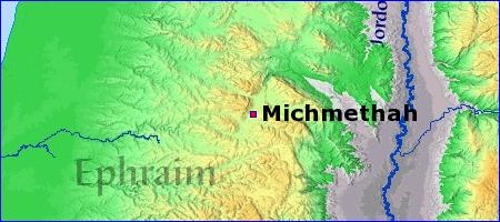 | Mich'methah. (hiding-place). A place which formed one of the landmarks, of the boundary of the territories, of Ephraim and Manasseh, on the western side of Jordan. Jos 17:7. The position of the place must be somewhere, on the east of, and not far distant from, Shechem. Smith's Bible Dictionary or |