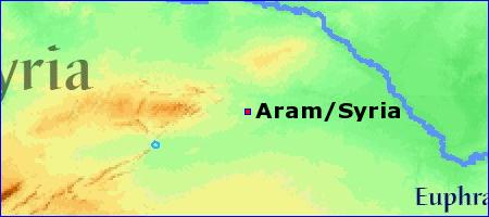 A'ram. (high). The name by which the Hebrews designated, generally, the country lying to the northeast of Palestine; the great mass of that high tableland which, rising with sudden abruptness from the Jordan and the very margin of the Lake of Gennesaret, stretched at an elevation of no less than 2000 feet above the level of the sea, to the banks of the Euphrates itself. Throughout the Authorized Version, the word is, with only a very few exceptions, rendered, as in the Vulgate and LXX, Syria. Its earliest occurrence in the book of Genesis is in the form of Aram-naharaim, that is, the "highland of or between the two rivers." Genesis 24:10. Authorized Version, "Mesopotamia". In the later history, we meet with a number of small nations or kingdoms forming parts of the general land of Aram; but as Damascus increased in importance, it gradually absorbed the smaller powers, 1 Kings 20:1, and the name of Aram was at last applied to it alone. Isaiah 7:8, also 1 Kings 11:24-25; 1Ki 15:18, etc. Smith's Bible Dictionary or |